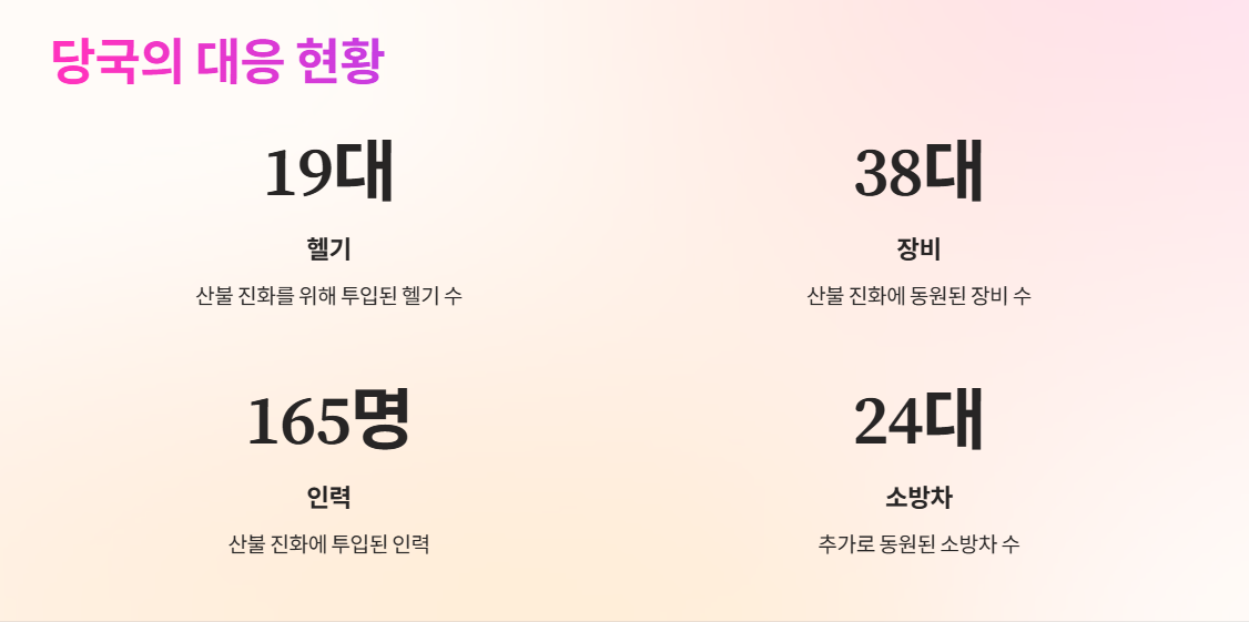 소방당국은 추가로 소방차 24대를 동원해 불길을 차단하려 했으나 강풍으로 인해 진화에 어려움을 겪었습니다. 특히 산불이 발생한 함지산은 도심과 인접해 있어 민가와 주요 시설물 보호가 최우선 과제였습니다. 당국은 방어선을 구축하며 불길이 민가로 번지는 것을 막기 위해 총력을 기울였습니다.