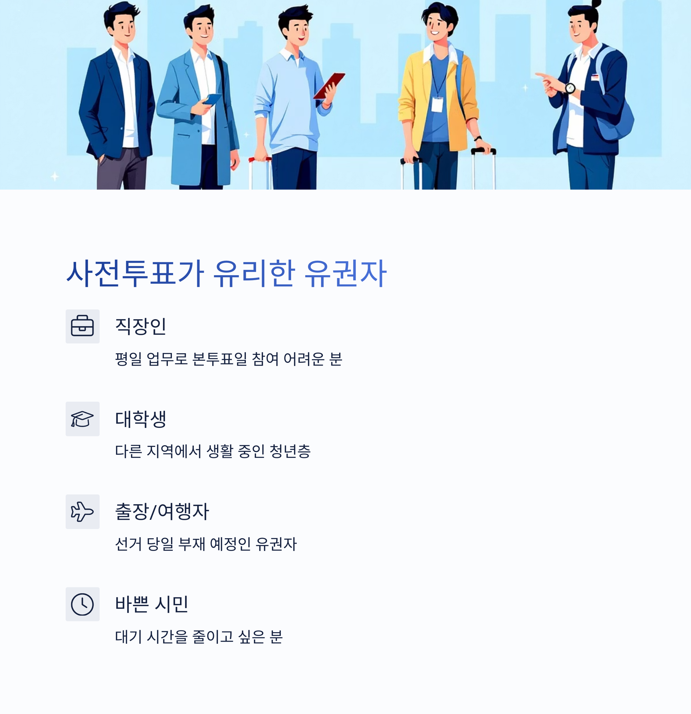 핵심: 사전투표는 시간적 여유와 장소의 유연성을 모두 보장합니다.